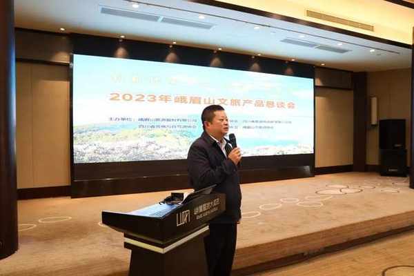 峨旅股份公司营销总监何群向与会嘉宾介绍:“峨旅投集团、峨旅股份公司作为四川省首批文旅龙头企业,旗下‘八个一’产业如同‘八部天龙’,围绕‘重上峨眉山’战略,全力拼经济、促复苏,铸品牌、强引领。峨眉山文旅资源丰富,产业链条完善,我们以开放的姿态欢迎旅行商朋友们,多挖、深挖、广挖,共同促进文旅市场的恢复和繁荣。”