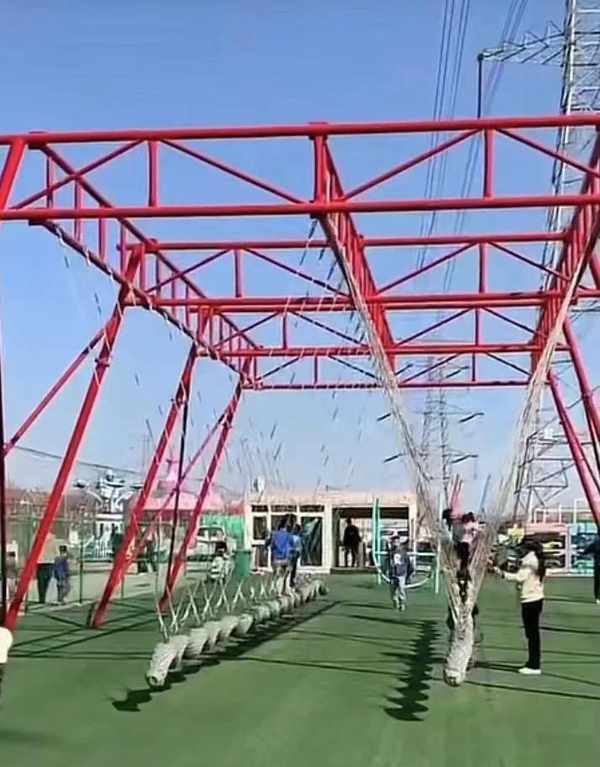 魔网穿越:由绳网编制而成,让孩子和成人在空中玩的高兴,不同于传统的高空绳索游乐,你会被全网包围,无需额外安全装备的辅助,15个关卡可以让你毫无拘束的游乐