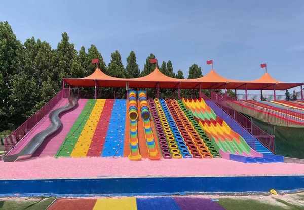 超级攀爬滑世界:以玻璃钢滑梯,不锈钢滑梯,滚筒滑梯,七彩滑道加攀岩石攀爬,绳索攀爬,轮胎攀爬综合性大型游乐设备,滑道分单人滑道,双人滑道和波浪形滑道。