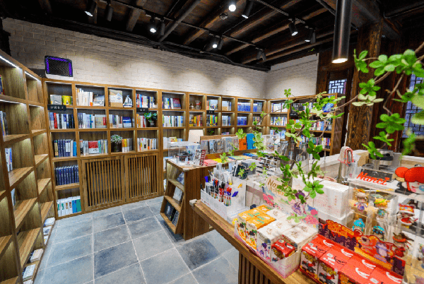 “雪”是坐落于管氏宅的“南村映雪”,也是松江“最美书店”之一。斑驳的白墙上,“南村映雪”的店招简朴中透着雅趣。别看门头不大,其实店内别有洞天。