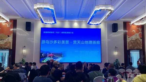 “游乌沙多彩美景·赏天山地理画廊”新疆塔城地区乌沙春季旅游推介会现场(央广网发 王丽 摄)