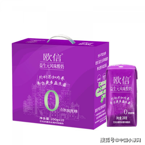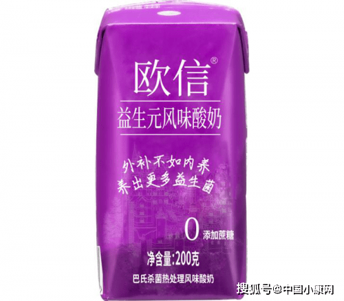 欧信益生元风味酸奶采用专利配方,在配料中添加了婴幼儿奶粉中常见的“益生元”有益成分,添加益生元能够促进益生菌繁殖。其配料中的低聚果糖就是益生元的一种。
