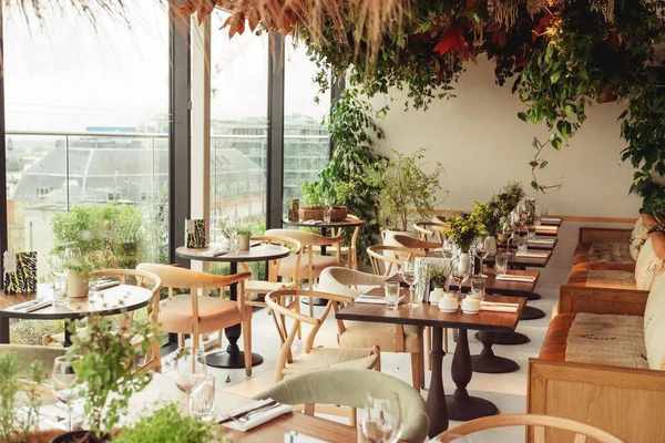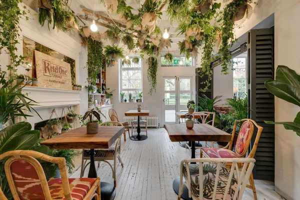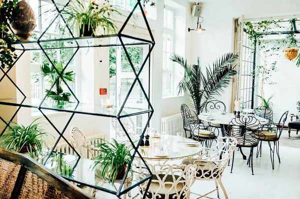 餐厅划出了不同的空间,咖啡区、饮酒区舒适安逸,很适合闲聊发呆。 而漫步至餐厅The Garden Room花园房,则会被悬挂错落的大量植栽疗愈。