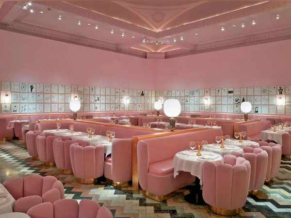 当中最受欢迎的是The Gallery用餐空间的360度粉红世界,由墙壁、吊顶、丝绒餐椅都被涂上了粉红色系,每个角落都写着“粉红少女心”, 处处都是精心布置的仪式感。