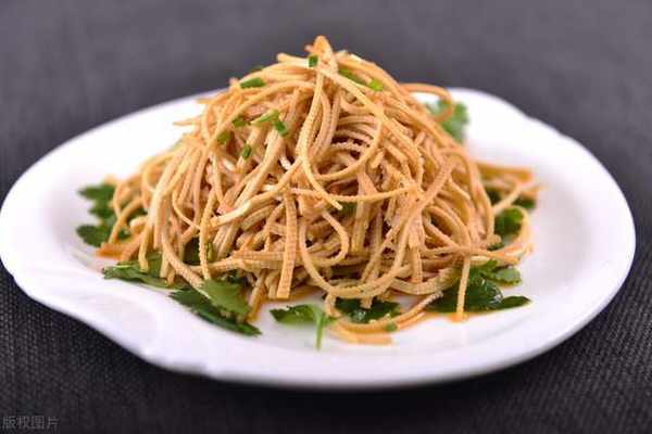 豆皮是一种低脂肪、低热量、高蛋白的食材,常被用来制作各种凉拌菜。