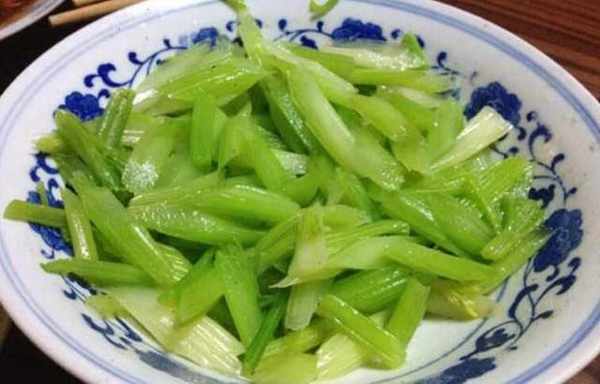 1、将芹菜洗净,去掉叶子,切成段状,焯烫至断生后捞出,放入冷水中浸泡。