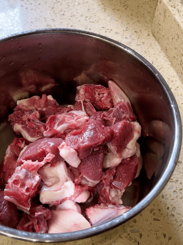 1、鸭子切块,用面粉加水冲洗干净,沥干水分。