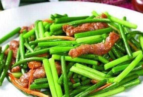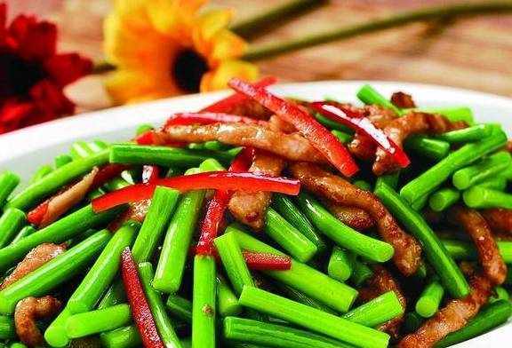 蒜薹性温,具有温中下气,补虚,调和脏腑,以及具有活血、防癌、杀菌的功效,对腹痛、腹泻有一定疗效,蒜薹含有辣素,其杀菌能力可达到青霉素的十分之一,对病原菌和寄生虫都有良好的杀灭作用,可以起到预防流感,防止伤口感染和驱虫的功效
