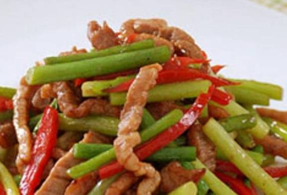 蒜薹肉丝材料:蒜薹适量,里脊(或纯瘦肉)适量,红辣椒4,5个,葱姜蒜适量,食用油适量,盐,鸡精,白糖适量,生抽,料酒,米醋适量,生粉(淀粉)适量,水适量