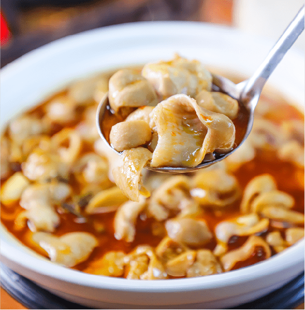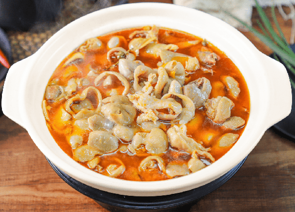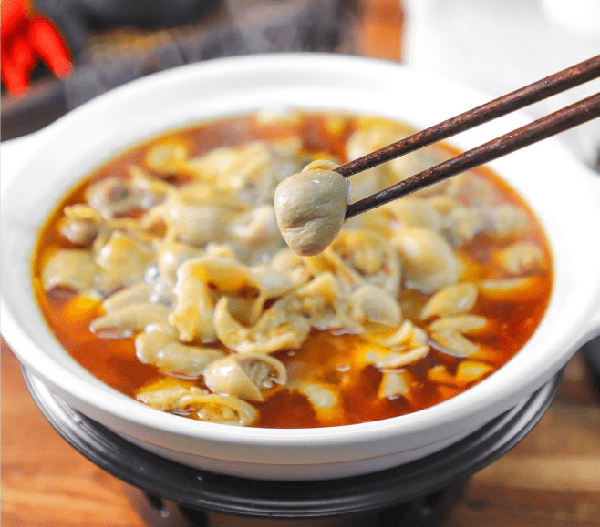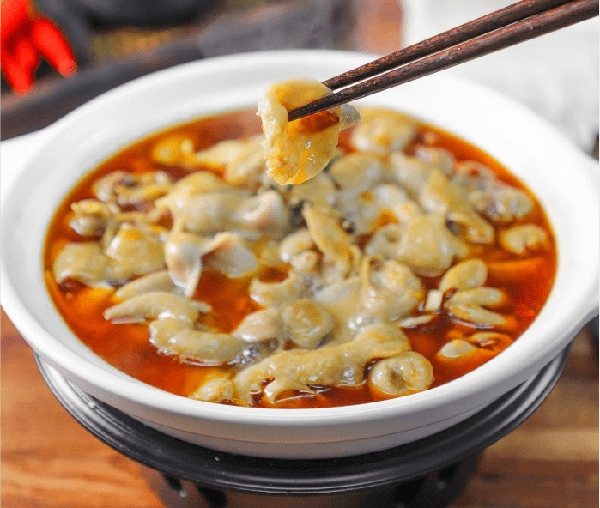 荆州本土品牌食在荆楚采用新鲜的鮰鱼鱼肚,与肥肠搭配组成美味又滋补的双拼火锅,这两样食材汇在一起做法可谓独特又好吃。鱼肚和肥肠夹在一起一口咬下去,脆弹嫩鲜,口齿留香。