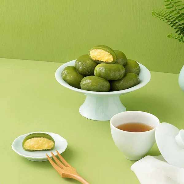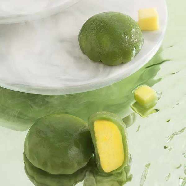 “榴芒一刻”在原料上做了改良和创新,精选小麦粉和抹茶粉,香气清新,不会影响馅料的本味,更适合大多数国人的口味。