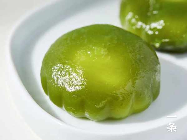外皮碧绿光亮,吹弹可破,看着就十分诱人,黏性、韧性都很足,口感Q弹、润滑。