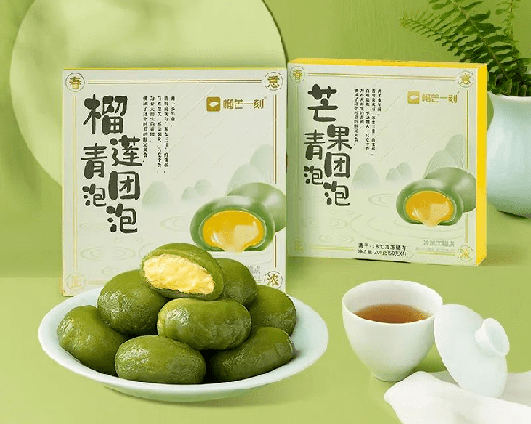 今天,一条带来两款榴莲青团泡泡、芒果青团泡泡,来自品牌“榴芒一刻”。