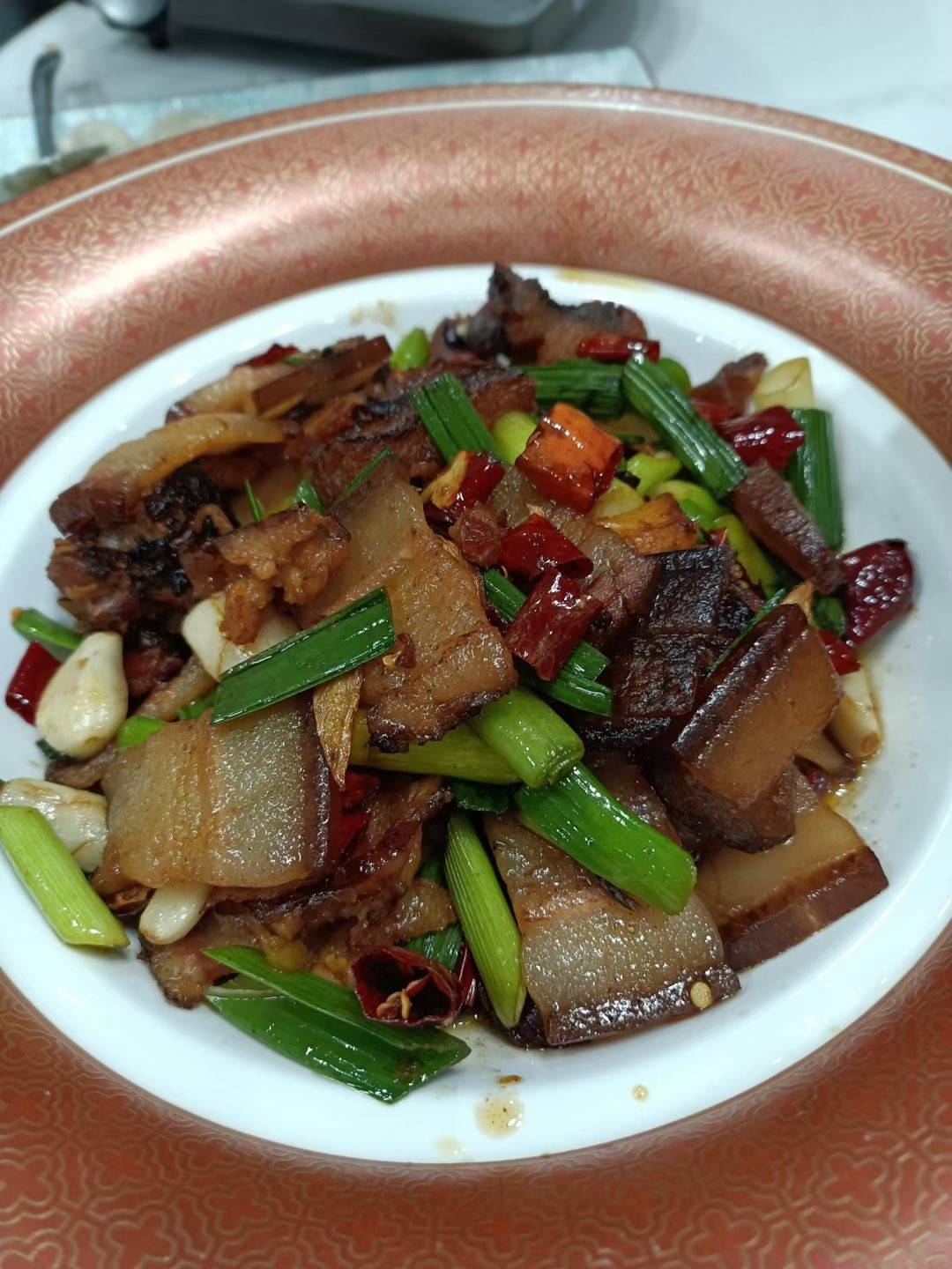 湘西湘味三拼,一口到湖南的感觉,青蒜苗搭配着白蒜干辣椒爆炒,腊鱼、腊肉、腊肠,带着山野和儿时的味道直抵心底,无法拒绝!