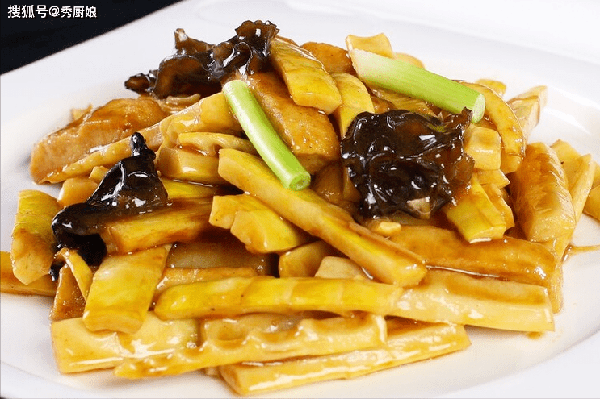 2.热锅烧油,放入葱姜蒜炒香,放入春笋和黑木耳,翻炒均匀后,加盐和生抽调味,再次翻炒均匀后,加入适量水淀粉勾芡,汤汁收至浓稠后,关火出锅,即可食用。