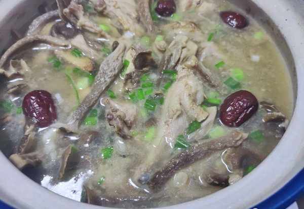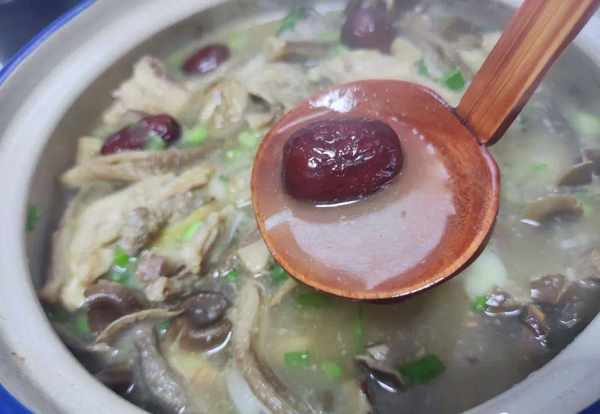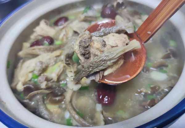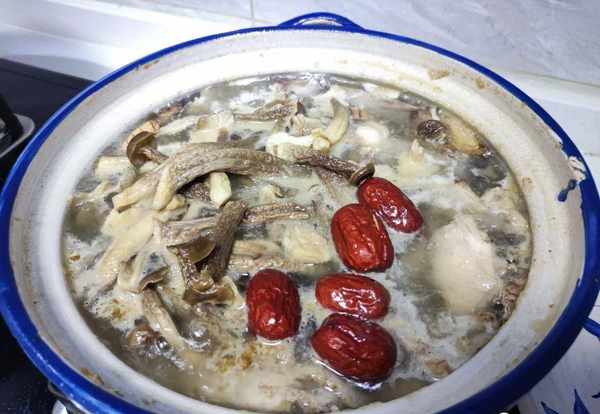 这样子一份鸡肉鹿茸菇汤就完成,这样炖的鸡汤非常鲜美,而且这样的鹿茸菇口感清脆特别好吃。因为里面加了红枣,所以汤汁也是甜甜的,非常好喝。