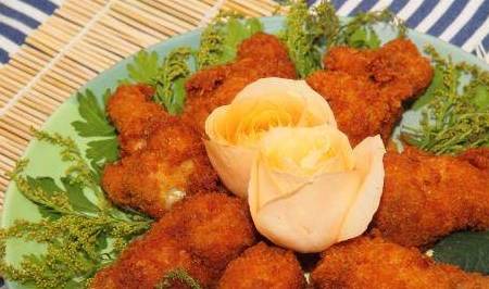 5.油锅加热8成热后,放入鸡翅大火炸至表面金黄即可