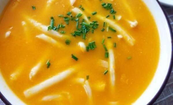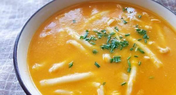 金黄柔软的南瓜泥配上雪白的玉菇,做成一锅暖暖的汤。香、味美、营养丰富。食谱也很简单。孩子和家人都喜欢,更适合初冬。食谱分享给大家。