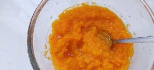 2.蒸熟的南瓜用勺子压成细腻的南瓜泥