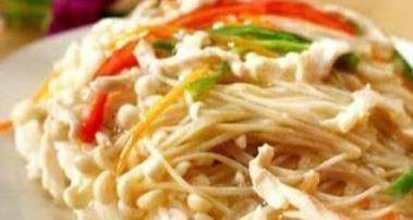 配料表:瘦猪肉、金针菇、红辣椒、酱油、盐、淀粉、姜末、酱油、辣椒油、葱花
