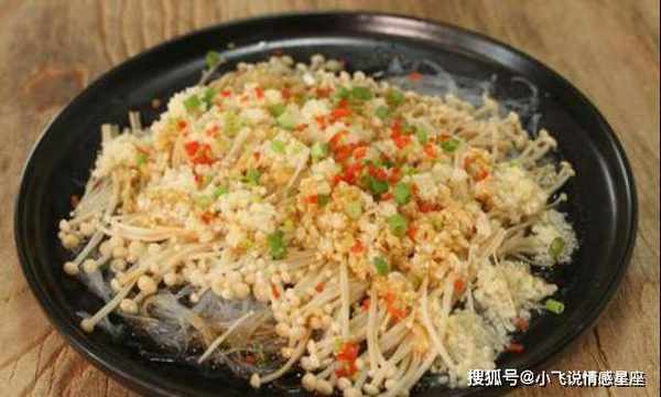 材料:大蒜1头、金针菇、龙口粉丝一小把、红辣椒、小葱、盐、生抽、香油