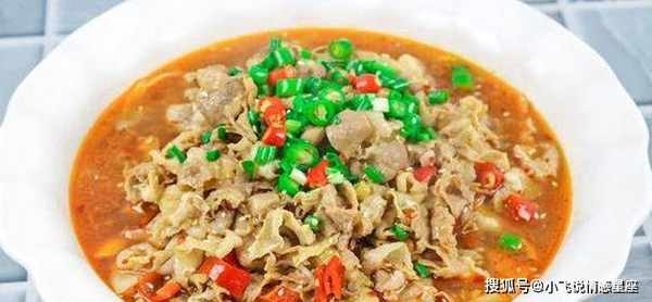 3.将肥牛肉放入沸腾的汤中煮至变色