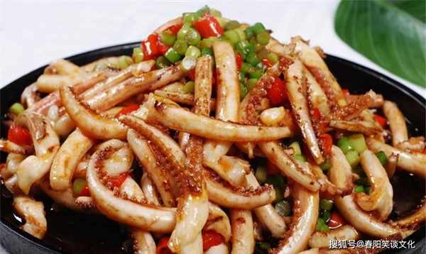 1、鱿鱼用清水洗净,切成5-6厘米长、0.2厘米宽的块,放入陶碗中,倒入清水静置2小时,捞出,沥干水份,将葱和叶去皮,细丝切块,绿豆芽去头,根部洗净,放入开水锅中烫一下,捞出,沥干水分,装盘,加一点。将酒和味精煮沸拌匀;