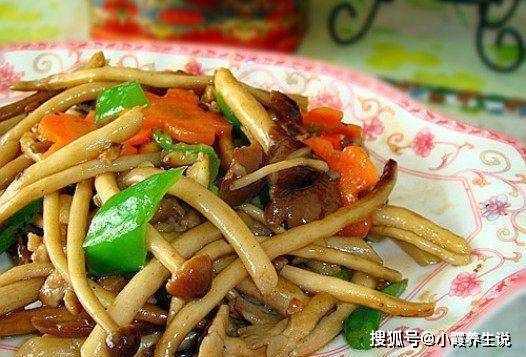 1、茶树菇用水泡软,洗净切块。
