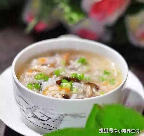 原料:粥、鹅脯肉、干百合
