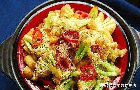 1.将菜花洗净,用刀沿柄切成小朵,放入淡盐水中浸泡10分钟,沥干水分。
