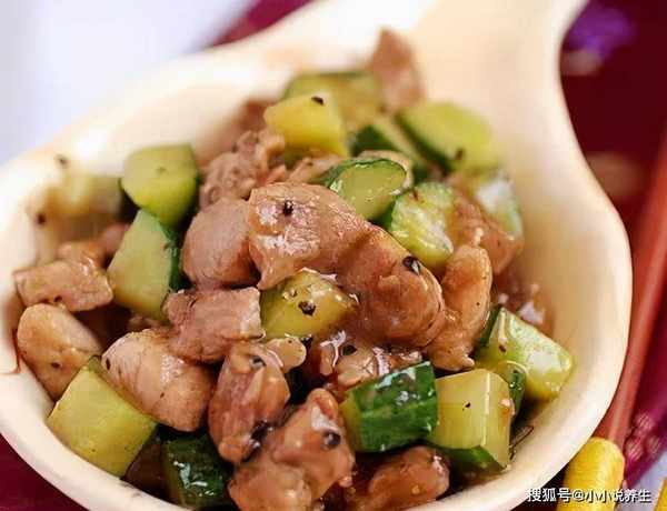 2、黄瓜洗净,切成1.5cm*1.5cm的小方块备用。3、锅烧热,油烧至60%,加入腌好的里脊肉丁,生炒至碎,捞出备用。