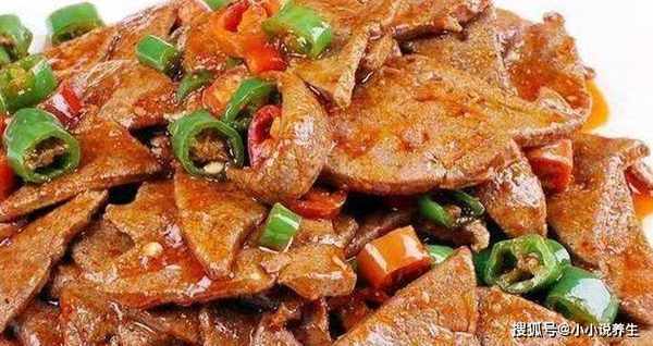 2)锅内油烧热,加入姜末炒香,加入辣椒炒至红辣椒油,加入泡椒和蒜片,再加入猪肝,炒香,加盐把鸡肉炒好。