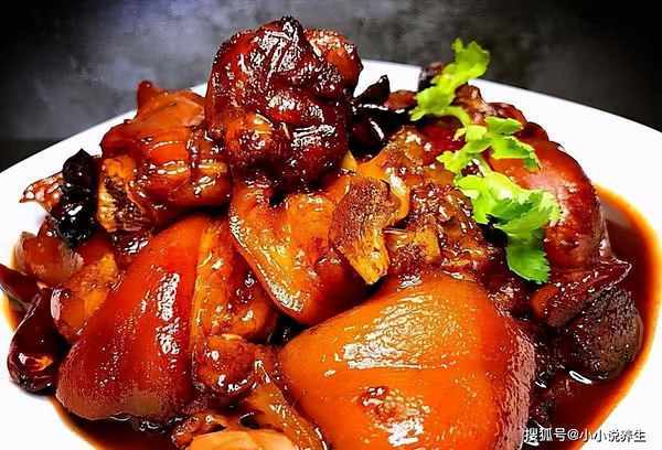 配料:猪蹄、姜、蒜、葱、八角、月桂叶、桂皮、干红辣椒、花椒、冰糖、料酒、生抽、老抽;