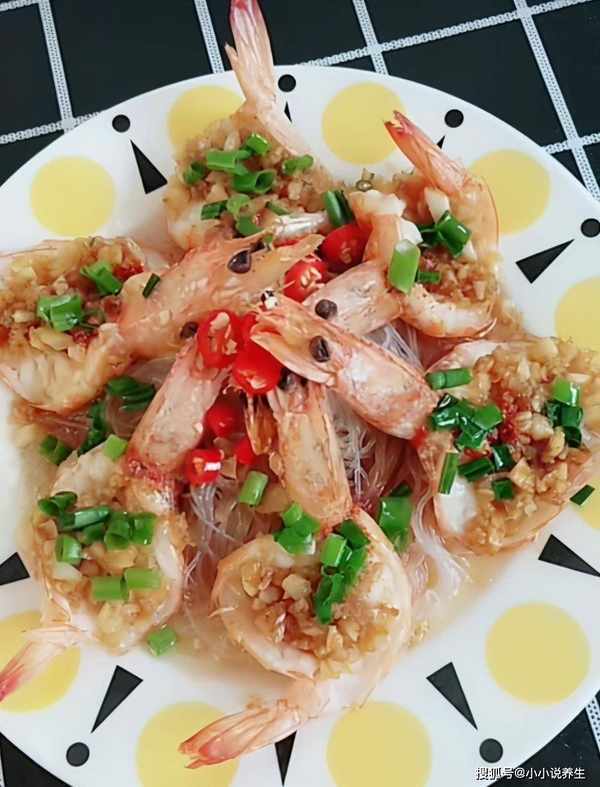 制作方法:1.事先泡好的面条铺在盘子里,虾仁切去背面,虾仁去线,加入料酒,腌制20分钟,然后一一摆在盘子上面条。