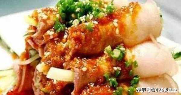 3、将煮熟的肉取出,沥干水分,放在案板上,用刀切成片,蘸上酱汁,或者裹上黄瓜和洋葱条,装盘,淋上淋上酱汁,撒上香葱配色,是一道色香味俱全的硬菜。酱料是将上面列出的酱料的配料混合搅拌成汁。