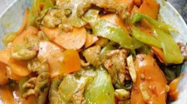 做法:1、将胡萝卜、生菜、瘦肉切成薄片。