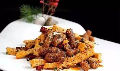 2、锅中放入色拉油烧热至50%,放入牛里脊肉炒至外硬内嫩,捞出沥油。3、将香豆腐放入锅中炸至表面酥脆变硬,捞出沥油。