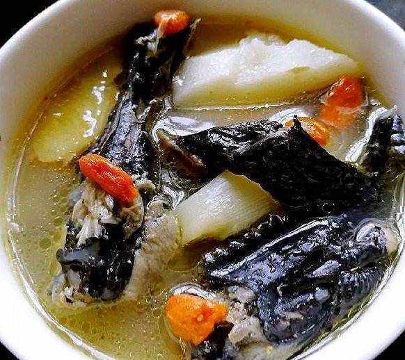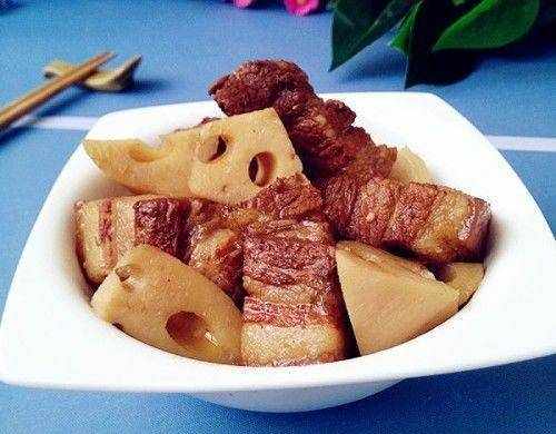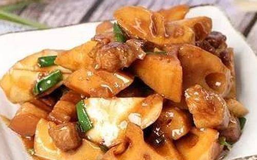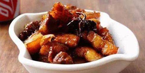 3、最后将肉加水泡软,用小火慢炖至汁浓,肉脆香。