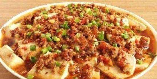 材料:南豆腐(软豆腐)、牛肉碎或猪肉碎、豆豉少许、小葱(蒜苗最好)、姜末、蒜末、辣味郫县豆瓣酱、淀粉水