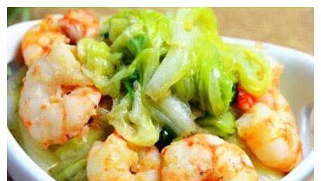 4:先把大白菜下锅,等大白菜梗熟了,再放入大白菜叶,胡萝卜末,加入适量食用盐和白糖,等白菜变色变化,然后放入刚刚炸好的大虾,稍微翻炒一下,然后关火,最后加入适量的鸡精翻炒均匀,然后出锅。