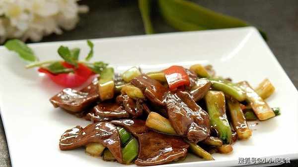 2、猪肝洗净,切成薄片,用1克精盐、15克湿淀粉(10克淀粉和水)裹匀,倒入40%热油中,过滤倒入,然后沥干油。