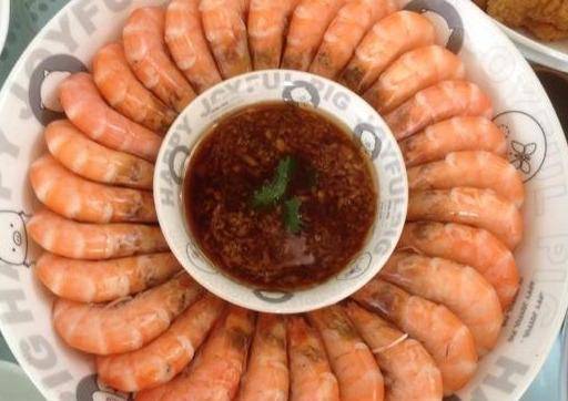 原料:虾仁、盐、葱、姜、小葱、花椒、八角、桂皮、料酒、酱油、香油、醋