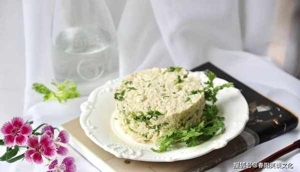 材料:豆腐300克,香菜1小把,盐适量,香油少许