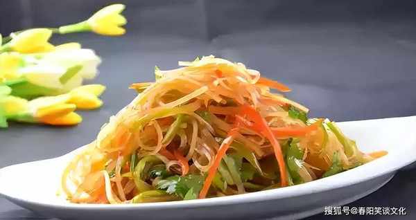 材料:土豆、胡萝卜、黄豆芽、芹菜、牡蛎、盐、酱油、鸡精、干辣椒、香醋、混合油、元真糖、香油。