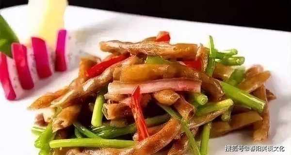 1.生猪手皮切条,用黄酒、盐、味精、姜酒腌15分钟,备用。