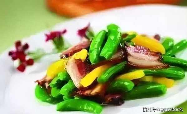 原料:香肠100克、荷兰豆200克、盐、谷氨酸钠