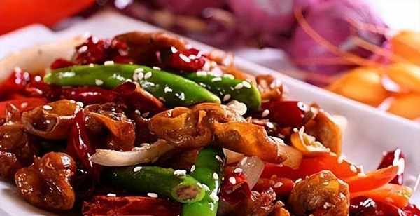 4.加入玉米和黄瓜籽快炒,然后加入鸡大腿快炒。5.提前准备好酱汁,倒入锅中,快速煎熟
