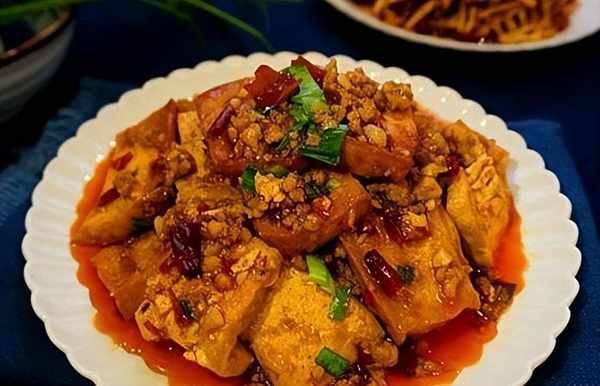 原料:骨汤100ML老豆腐肉片100g红油30ML黑酱油15ML料酒15ML干辣椒5g白糖5g盐5g串10g葱花适量蒜末姜末适量。