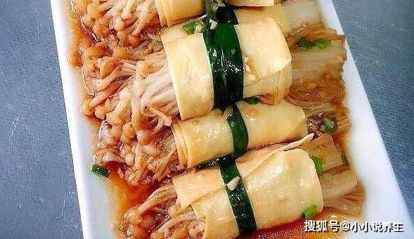 材料:豆浆2块、金针菇300克、葱、姜、蒜、盐、生抽、蚝油、糖;