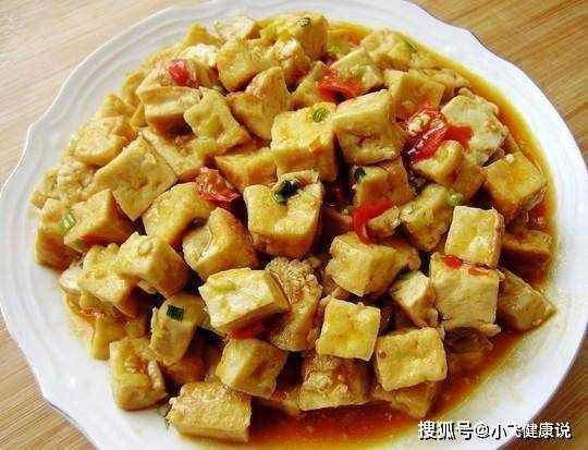 2、锅内放入适量九三豆油,油温4-50%,加入豆腐块炸至金黄。